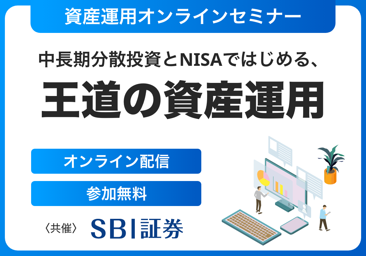 本セミナーでは、資産運用アドバイザー「IFA」が資産運用の基本から、資産運用を始めるために大切な『中長期分散投資』・『ゴールベース』の考え方、NISAの賢い活用法、運用事例の紹介など、これからの資産運用を考える上で大切な様々なポイントを解説します。