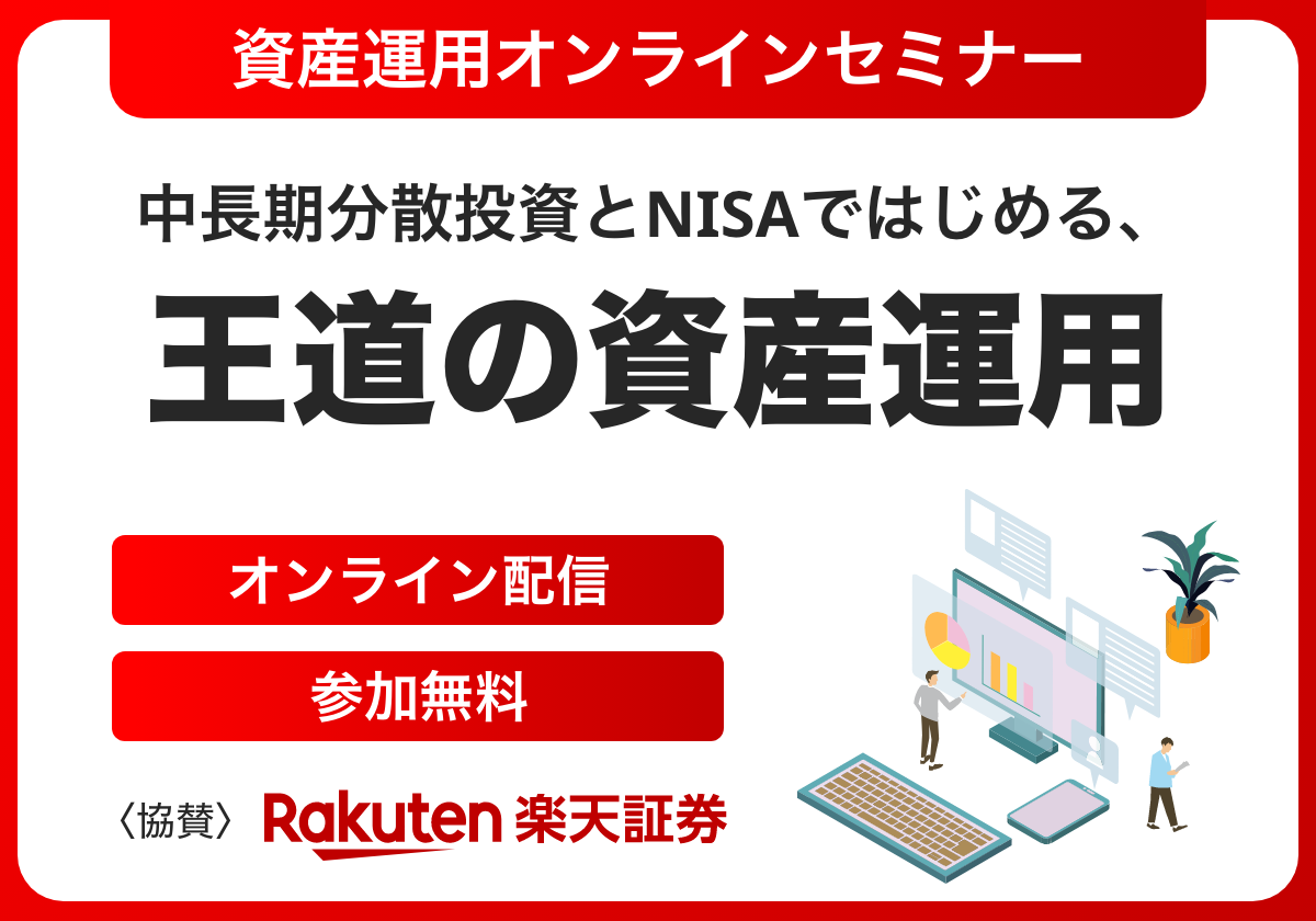 本セミナーでは、資産運用アドバイザー「IFA」が資産運用の基本から、資産運用を始めるために大切な『中長期分散投資』・『ゴールベース』の考え方、NISAの賢い活用法、運用事例の紹介など、これからの資産運用を考える上で大切な様々なポイントを解説します。